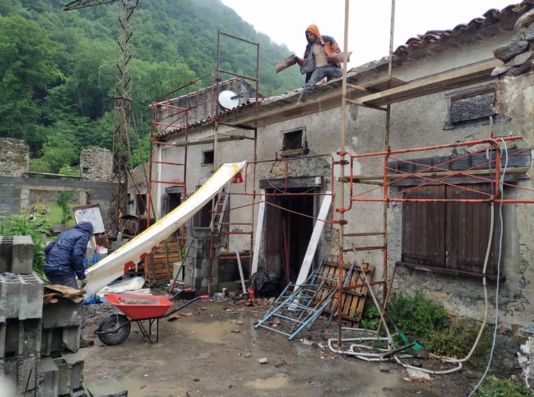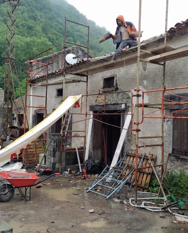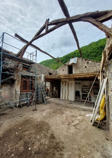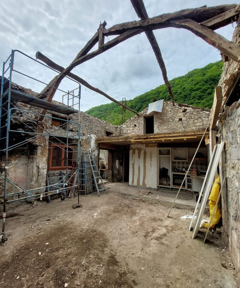 L'ensemble de 350m2 est une ancienne ferme avec un premier bâtiment datant de 2 siècles, le tout était totalement en ruine, abandonné depuis 20 ans.