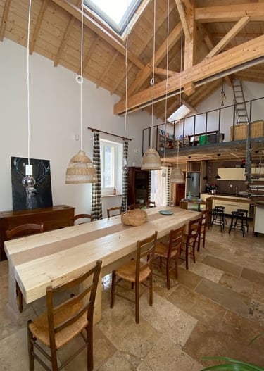 Le Refuge du Milan, c'est un gîte jusque 15 personnes qui vous séduira par sa vue, sa lumière, ses volumes : des espaces adaptés pour faire la fête en nombre, pour que les petits comme les grands puissent avoir leurs espaces de jeux, de détente.