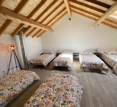 Profitez de 5 chambres parentale, et d'un dortoir de 6 lits. Tout le confort, linge de lit et serviettes inclus dans votre réservation, pour un séjour inoubliable en famille ou entre amis dans notre gîte unique.